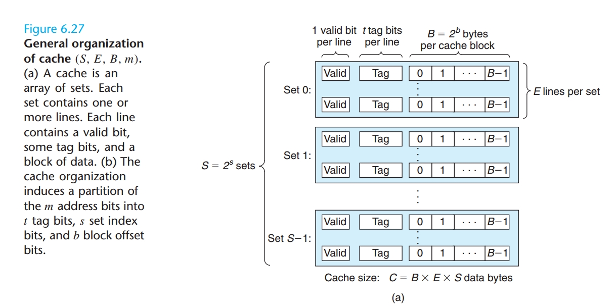 由一个包含所有高速缓存行的组(E = C/B)组成